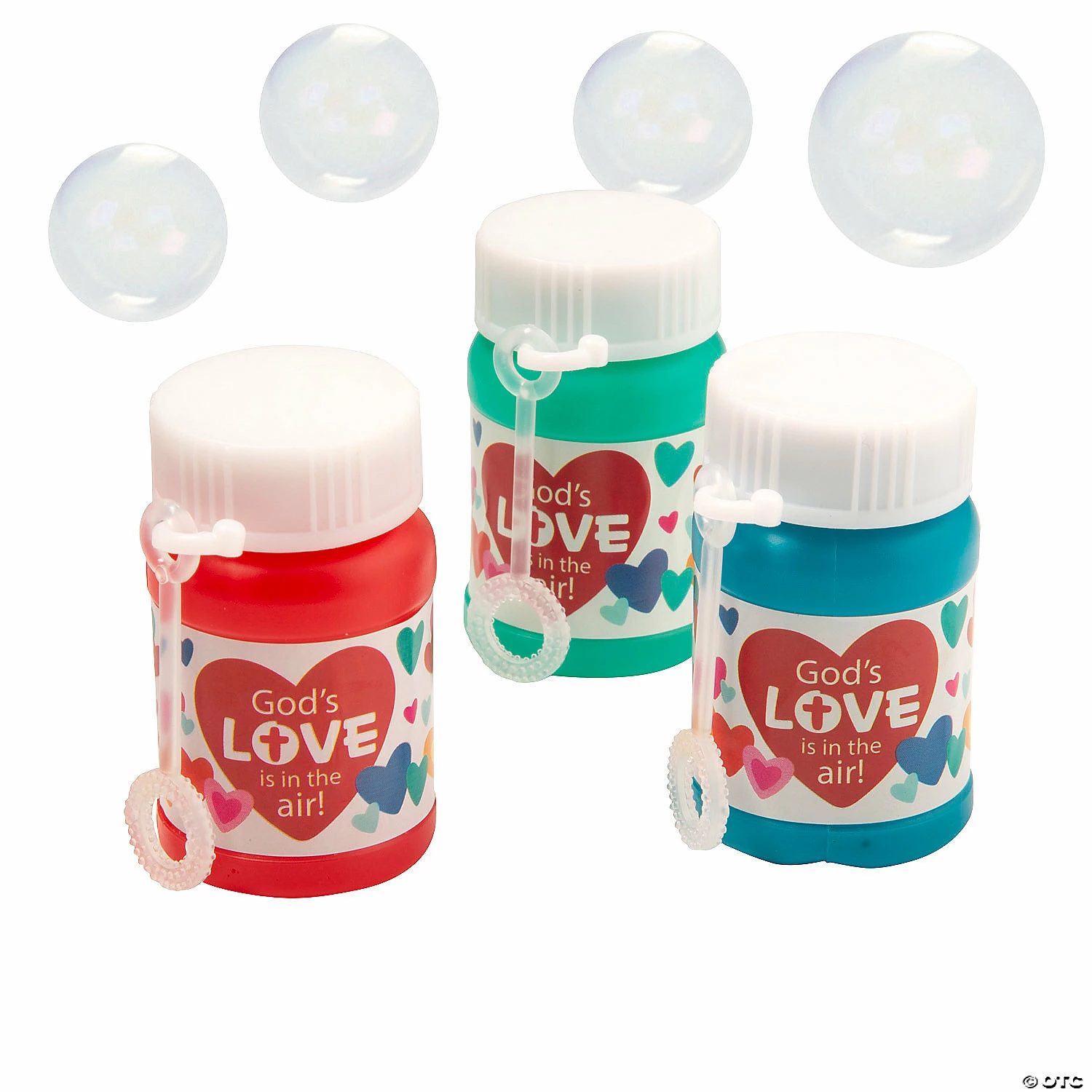 When it comes to spreading some faith and love this Valentineβs Day, these colorful bubble bottles fit the bill nicely! Featuring heart artwork and faith messaging, Sunday School teachers can hand these fun favors out to a class or drop in goody bags along with other prizes and tasty treats found on this website. Each 1-oz. bottle of bubbles includes an attached wand. Plastic. (2 dozen per unit) 2″ Β© OTC